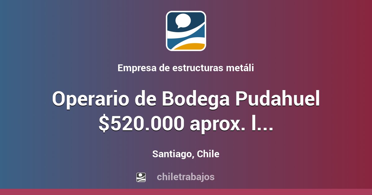Aplique fácilmente a 1.704 operario bodega ofertas de trabajo en chile en jobeka. ¡las últimas vacantes de operario de bodega de las mejores empresas de colombia están aquí! +200 avisos de trabajo para operario de bodega en yapo.cl ✅. Operario de bodega , vacante de empleo en pudahuel. Contrato a plazo, experiencia mínima de 1 año.